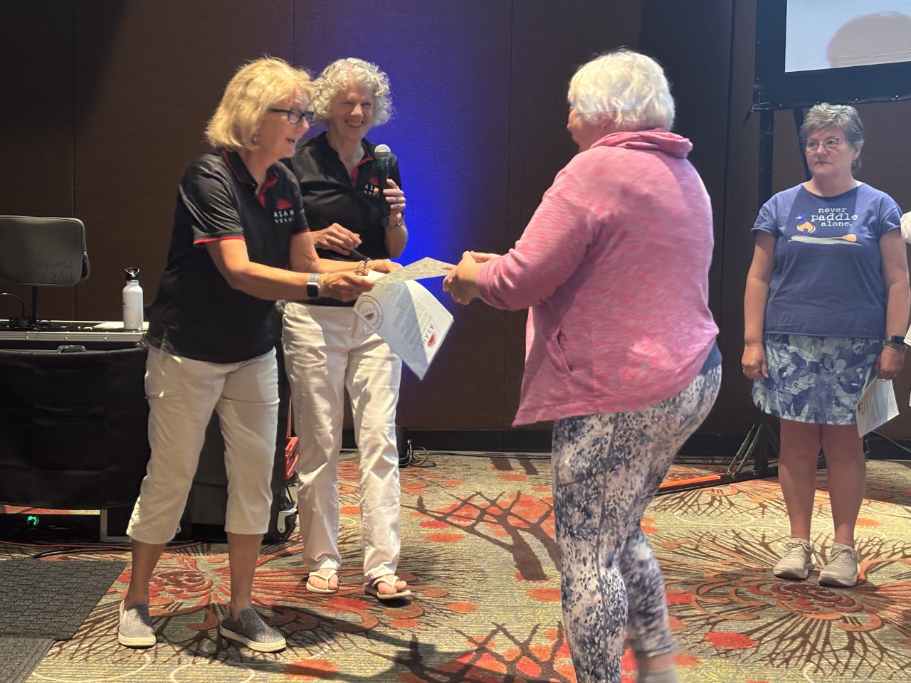 Lois receiving her Asahi Advanced Instructor Diploma at FinnFest 2025 in Duluth.